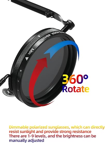 1โ9 Level Adjustable Lens โ Customize your view with ND filter technology that lets you adjust lens darkness from level 1 to 9, perfectly suited for any environment and personal preference.