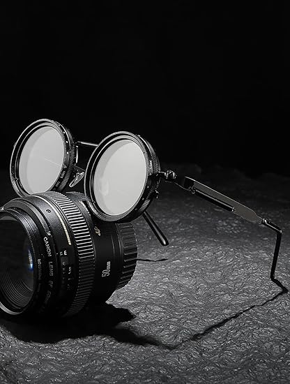 - Steampunk Adaptive Shade System Gear-operated tint control (1-9 settings) with brass knurled dials adjusts from light amber to near-black. Industrial-grade polarized lenses block 100% UVA/B/C + HEV, featuring exposed "pressure gauge" style intensity indicators.