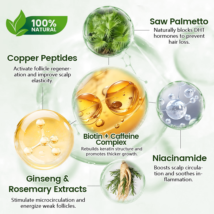 - Ginseng & Rosemary Extracts – Stimulate microcirculation and energize weak follicles.